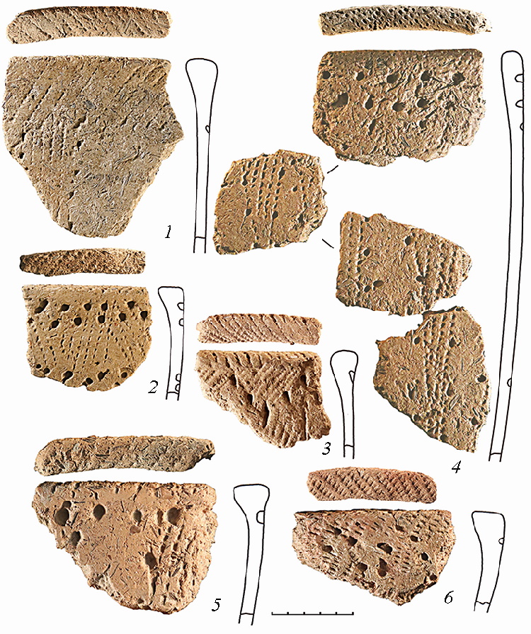 Данные сосуды являются характерным маркером культуры «асбестовой керамики», распространенной по территории Фенноскандии (от Швеции, Норвегии и Финляндии до Мурманской области и Карелии). Их датировка колеблется от 4 500 до 500 гг. до н.э., что вполне укладывается в периодизацию захоронения.